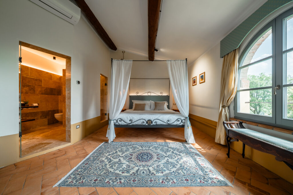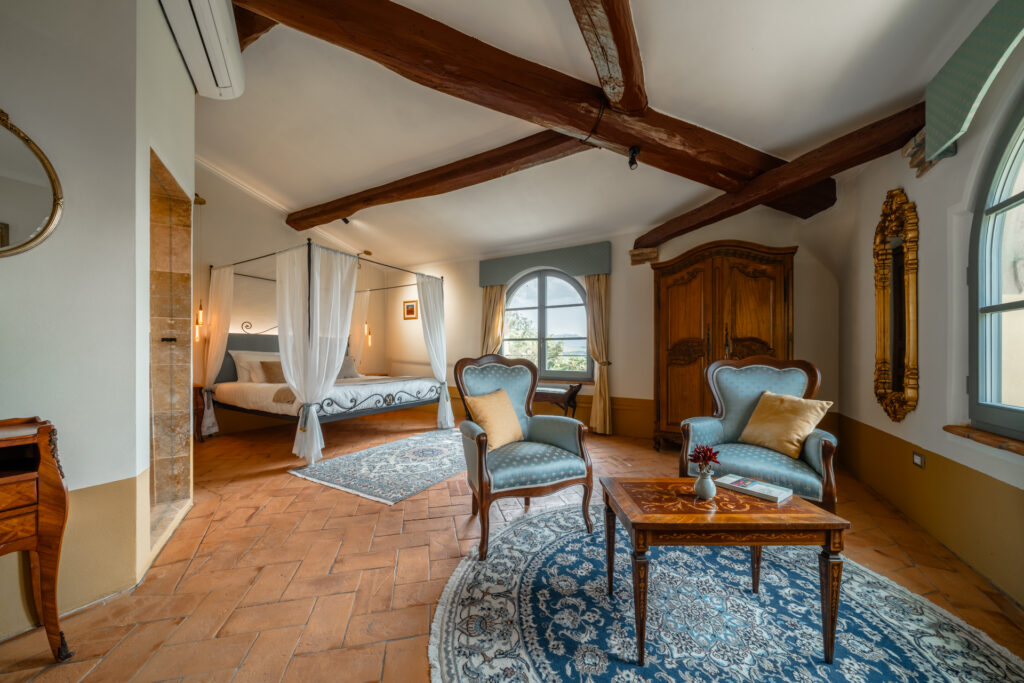 Tramonto Toscano (Tuscan Sunset) suite preserves the noble charm of Villa Montelandi. As the name suggests, the sunset views over the rolling hills are simply perfect.