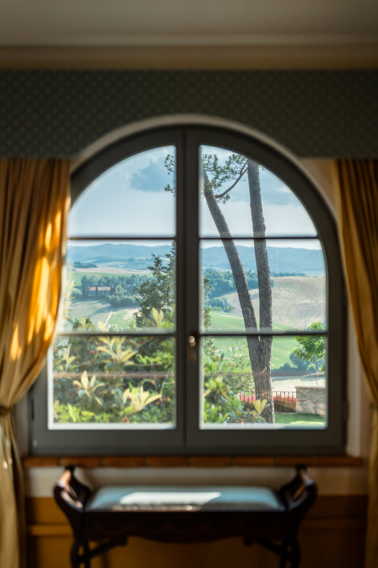 Tramonto Toscano (Tuscan Sunset) suite preserves the noble charm of Villa Montelandi. As the name suggests, the sunset views over the rolling hills are simply perfect.