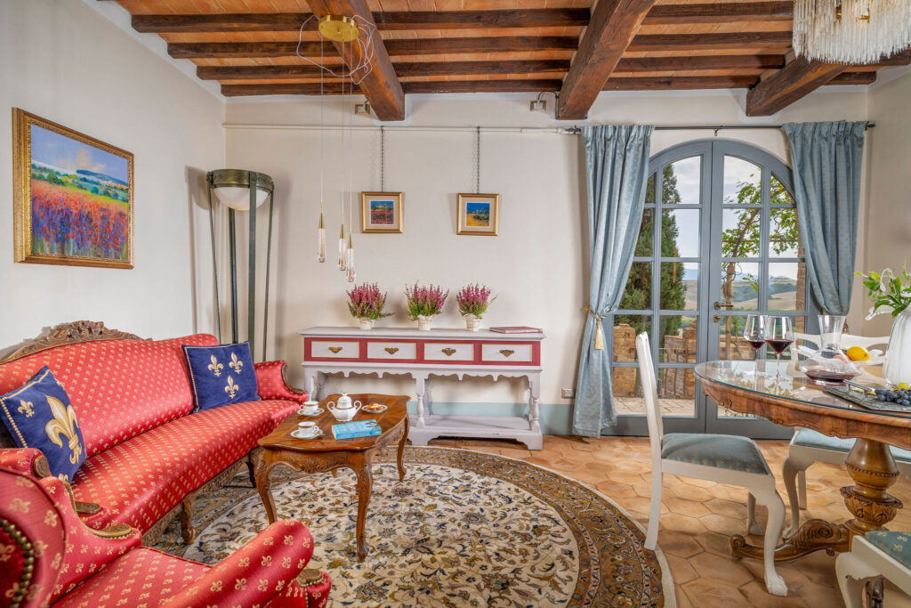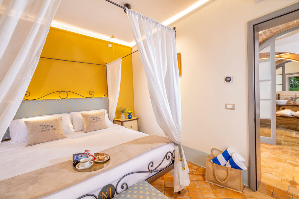 Vento di Lavanda (Lavender Breeze) is a two-bedroom apartment with direct access from the panoramic terrace—just steps from the reception and breakfast area. Its rooms are filled with morning light, while the scent of flowers drifts gently through the air.